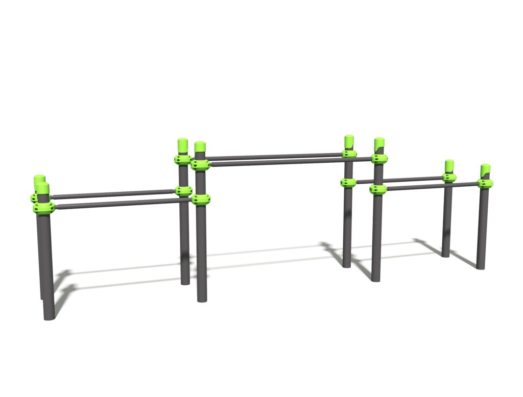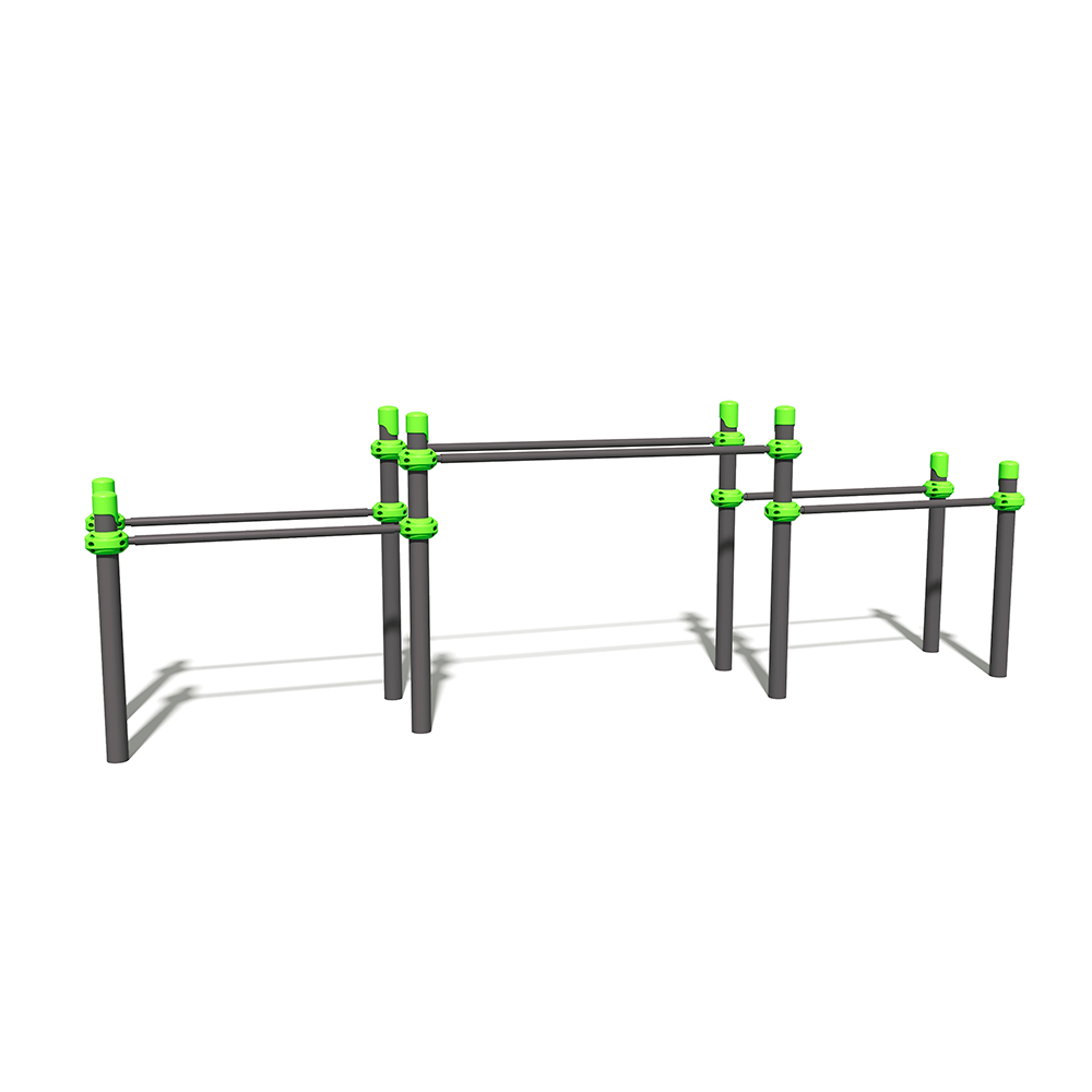 Наш трехуровневый комплекс — идеальная база для полноценной функциональной тренировки на свежем воздухе. Благодаря каскадному расположению перекладин вы можете легко варьировать нагрузку, прорабатывая мышцы груди, трицепса и плечевого пояса под разными углами. Продуманная эргономика делает оборудование универсальным: оно одинаково эффективно как для начинающих атлетов, так и для профессионалов, позволяя выполнять широкий спектр упражнений — от классических отжиманий до сложных элементов воркаута.
