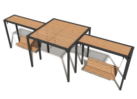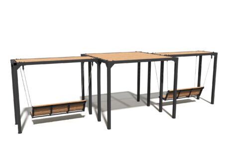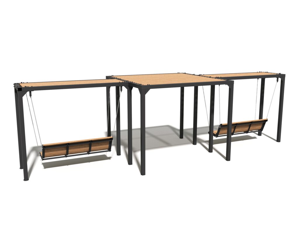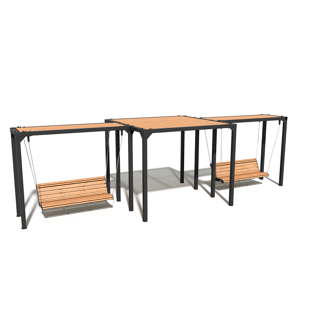 Наши парковые качели — не просто элемент благоустройства, а готовая точка притяжения для отдыха. Модульная конструкция с навесами создаёт комфортное пространство, где можно укрыться от солнца и спокойно провести время. Подвесные сиденья добавляют лёгкости и динамики, а продуманная геометрия позволяет органично вписать изделие как в современный городской парк, так и в природную зону отдыха. Это решение, которое сразу делает пространство «живым» и востребованным.