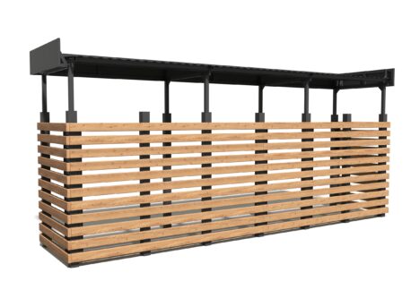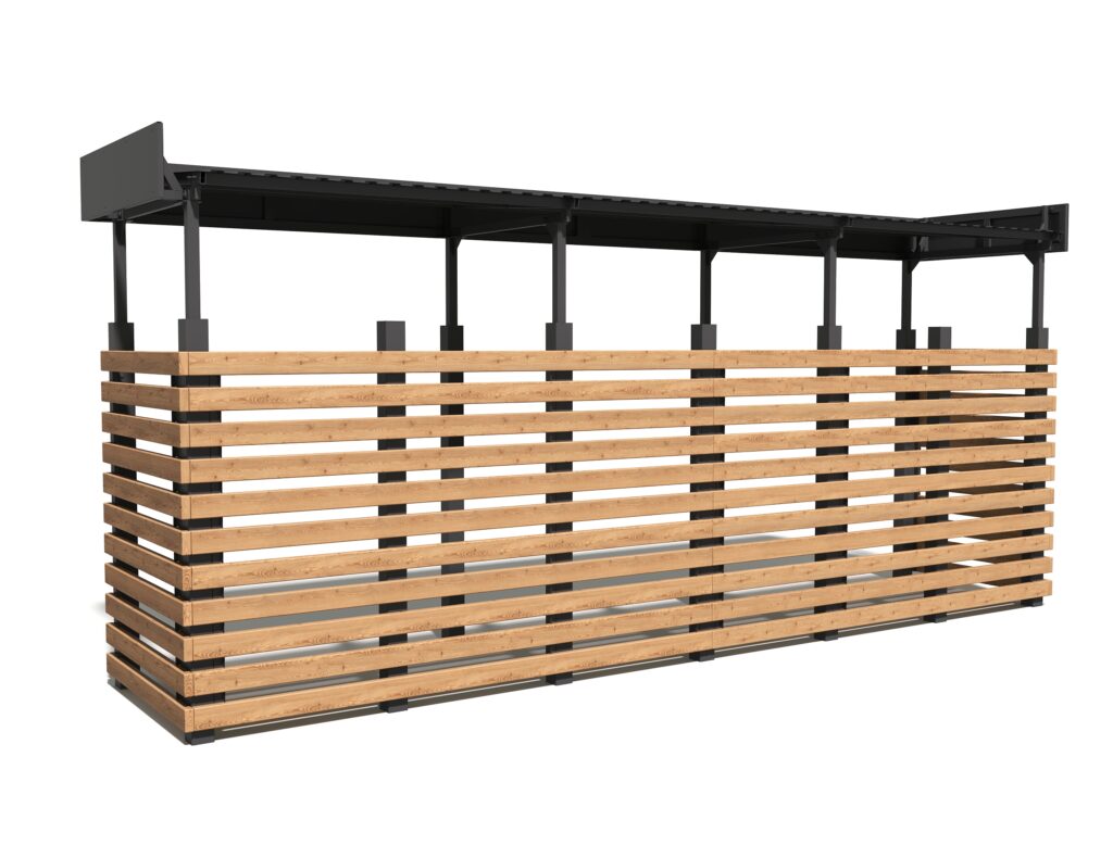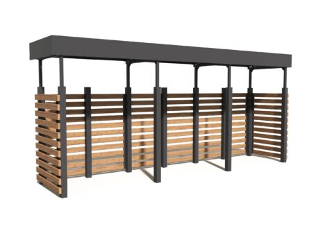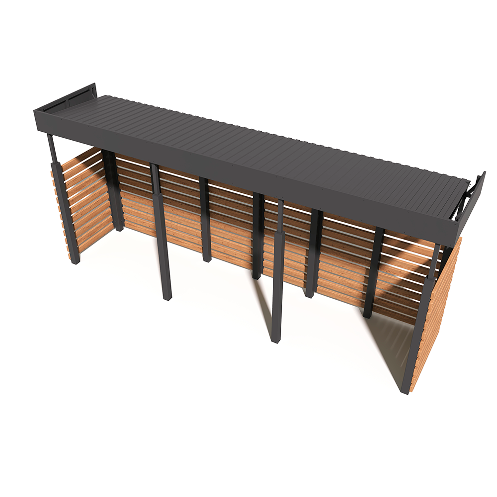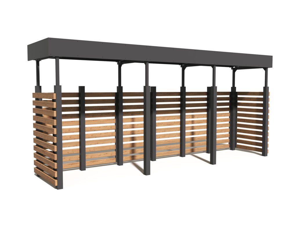 Превратите техническую зону в стильный элемент ландшафта. Эта современная конструкция эффективно скрывает мусорные контейнеры, защищая их от осадков и порывов ветра, при этом обеспечивая необходимую вентиляцию за счет выверенного шага деревянных ламелей. Лаконичный дизайн в духе скандинавского минимализма легко интегрируется в любую среду — от дворов жилых комплексов до парковых зон и частных владений, подчеркивая статус и аккуратность объекта.