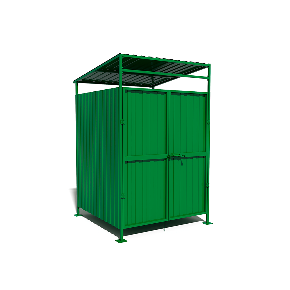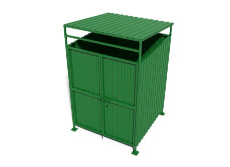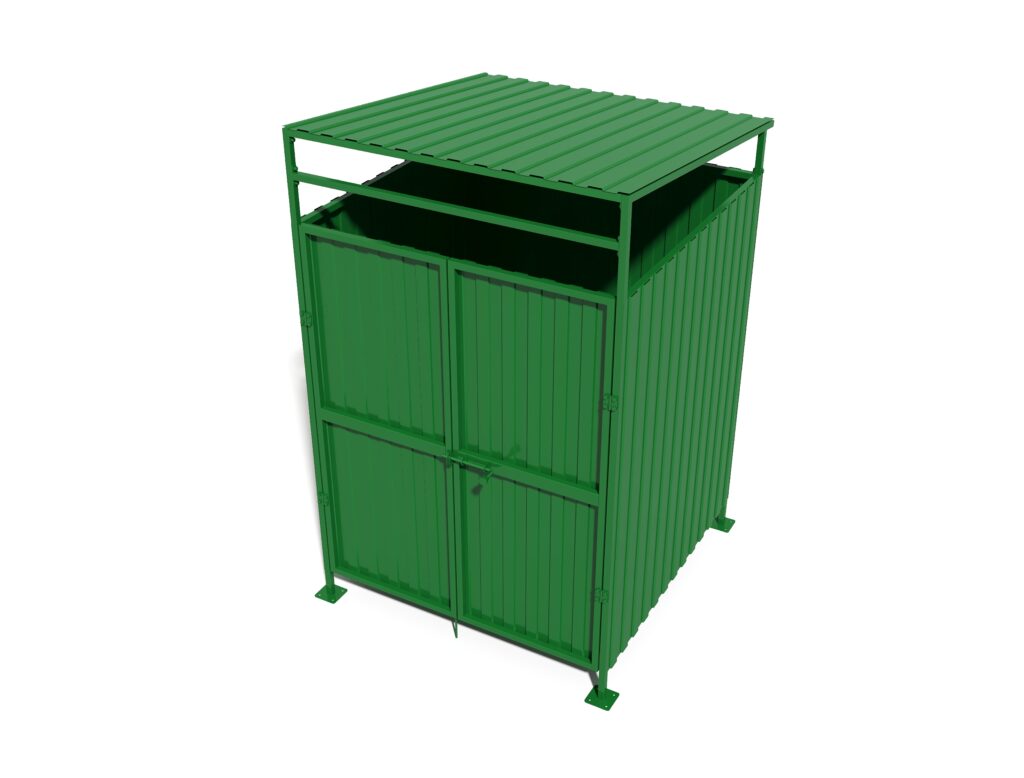 Каркас и панели выполнены из металла с полимерным порошковым покрытием, что обеспечивает устойчивость к осадкам, перепадам температур и ежедневной эксплуатации. Площадка оснащена распашными воротами для удобного доступа техники и обслуживания. Надёжное решение для дворов, парковок и общественных пространств, где важны долговечность, практичность и аккуратный внешний вид.