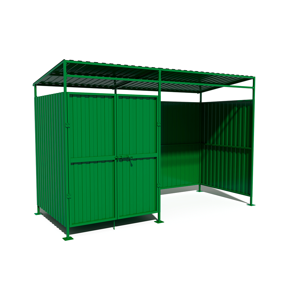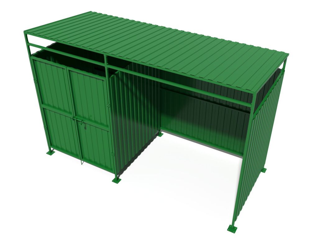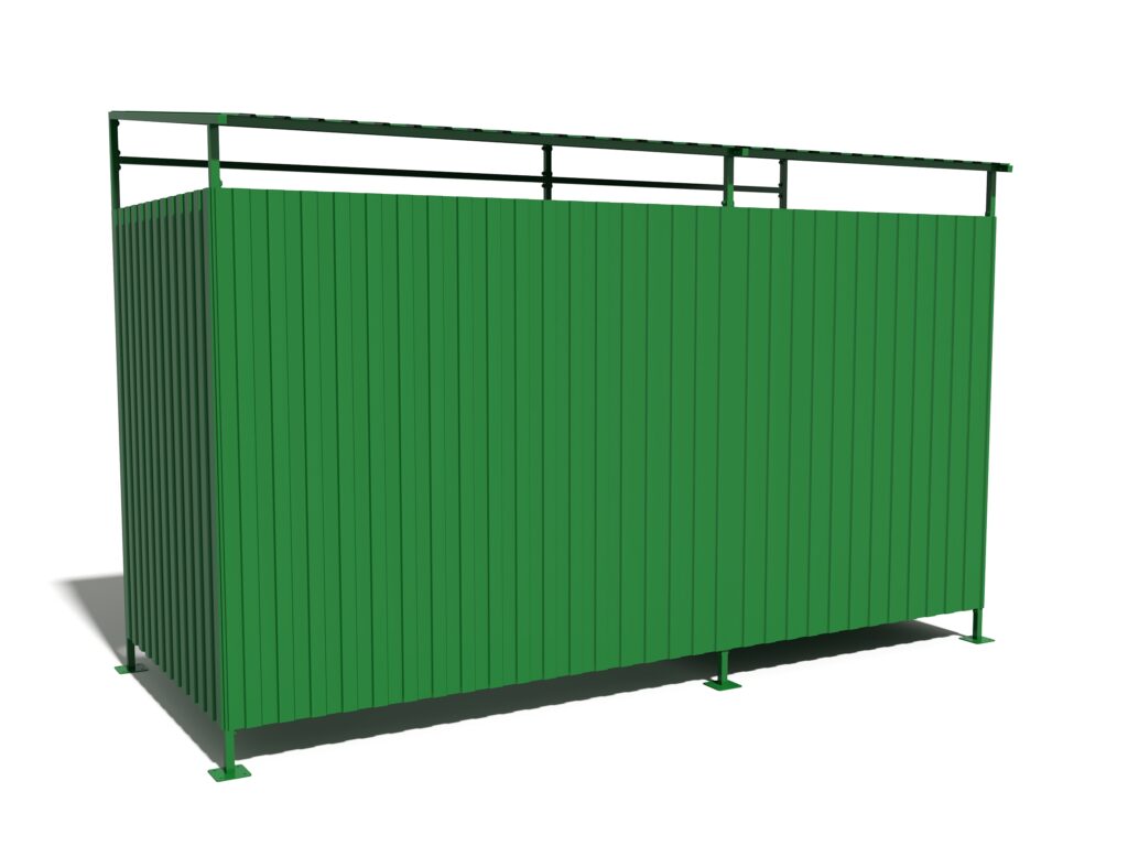 Контейнерная площадка с отдельным отсеком для КГО — удобное решение для организации современной зоны сбора отходов. Конструкция объединяет закрытое пространство для стандартных контейнеров и дополнительное отделение для крупногабаритного мусора, что позволяет поддерживать порядок на площадке и исключить складирование отходов вокруг. Крыша защищает содержимое от осадков, а продуманная конфигурация обеспечивает удобный доступ для эксплуатации и обслуживания.