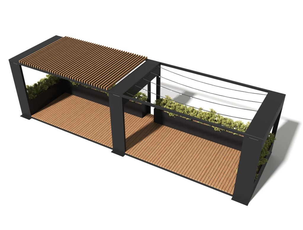 Создайте стильное и функциональное пространство для отдыха с нашим парклетом, который станет архитектурной доминантой любой городской локации. Лаконичный дизайн в стиле минимализма с интегрированными зонами для озеленения позволяет легко интегрировать конструкцию в современный ландшафт парков, набережных или входных групп.