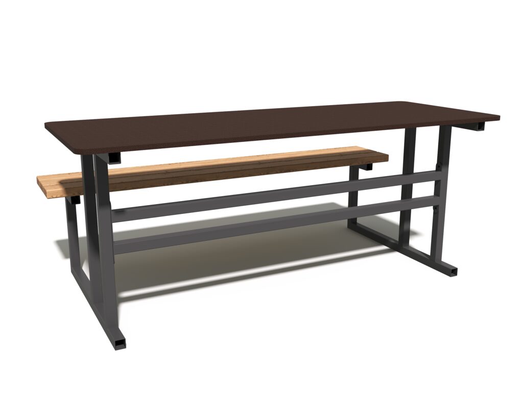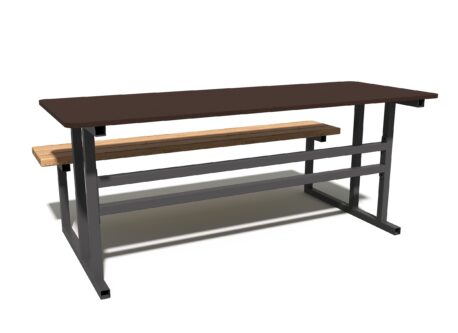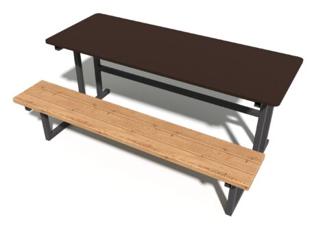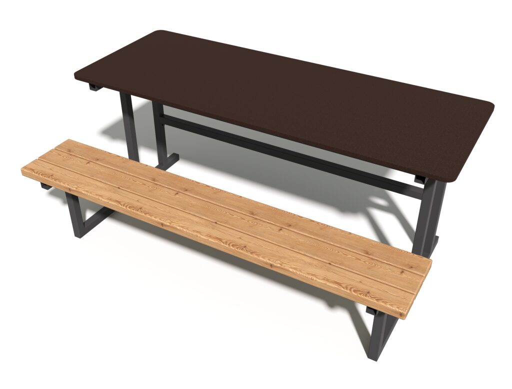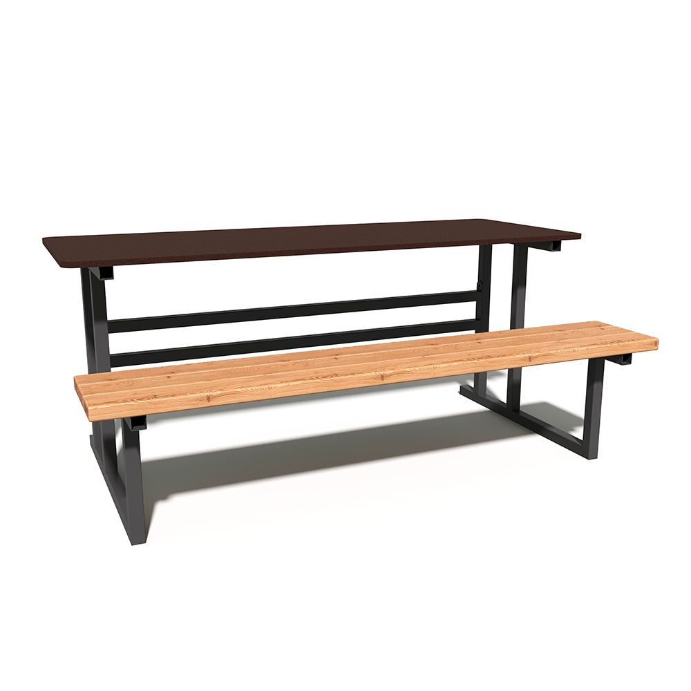 Сочетание натуральной древесины хвойных пород с защитным масляным покрытием и прочного металлического каркаса в полимерной краске гарантирует долговечность изделия даже при интенсивной эксплуатации в общественных местах.