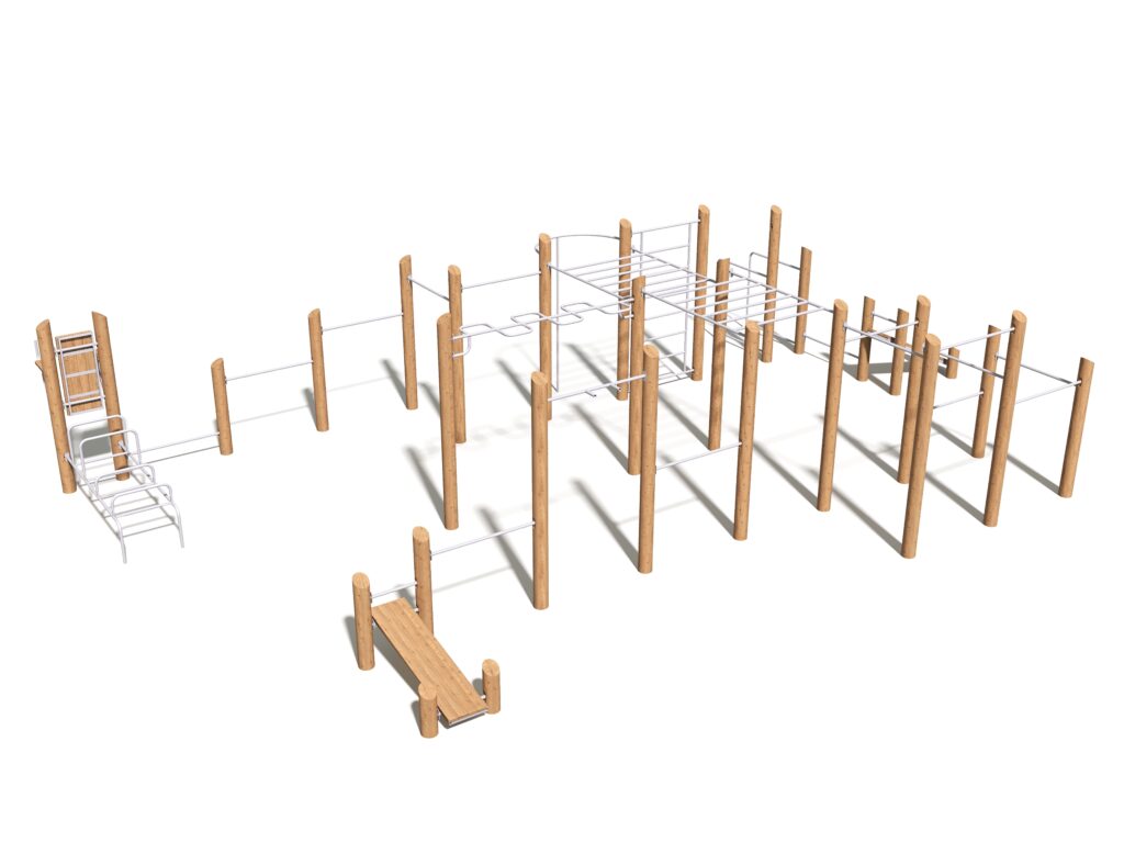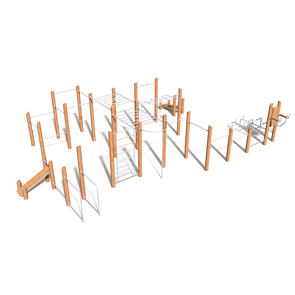 Наш многофункциональный воркаут-комплекс — идеальное решение для тех, кто ценит эстетику и профессиональный подход к тренировкам. Продуманная архитектура площадки объединяет в себе все необходимые элементы: от классических турников и брусьев до рукоходов и скамей для пресса. Использование натуральной древесины не только позволяет комплексу гармонично вписаться в любой ландшафт, но и обеспечивает комфортные тактильные ощущения: дерево не перегревается на солнце и не леденеет зимой, делая каждую тренировку максимально приятной.