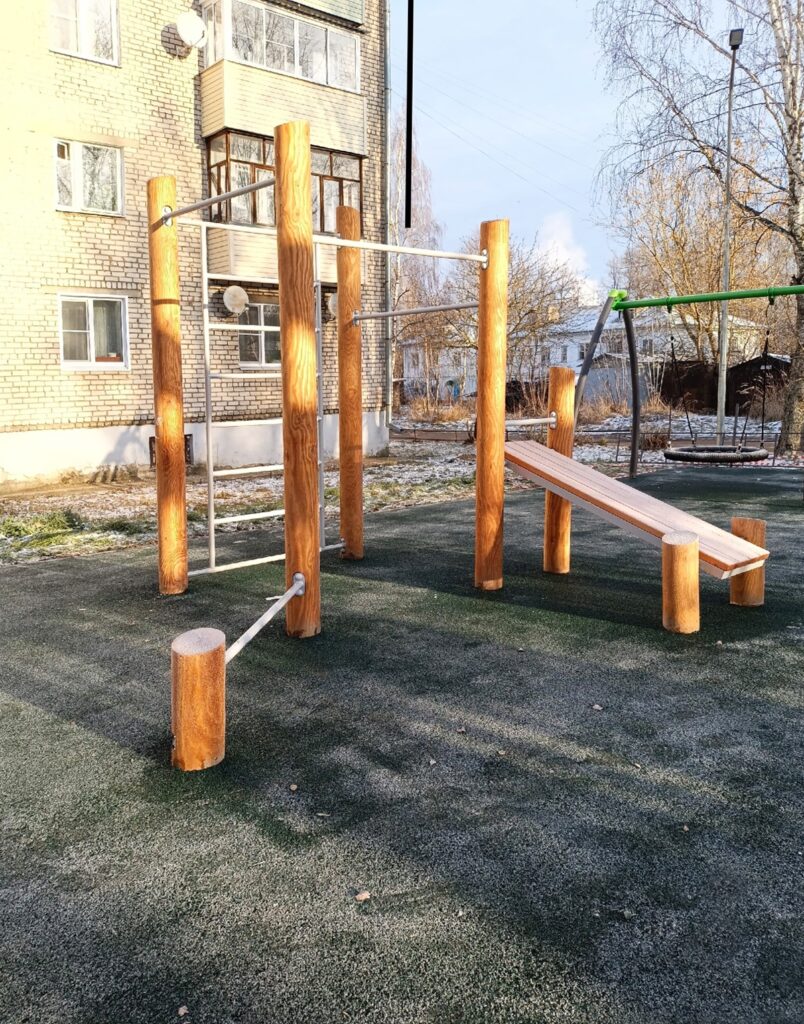 Этот комплекс оборудования изготовлен из натуральной древесины, что обеспечивает надежность и безопасность использования. Все элементы спортивного комплекса спроектированы для разнообразных упражнений и тренировок, позволяют развивать силу, выносливость и гибкость.